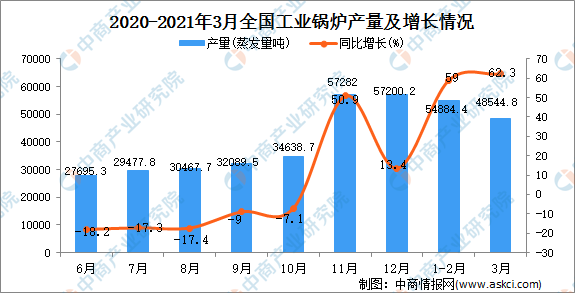 據(jù)產(chǎn)業(yè)研究院數(shù)據(jù)庫顯示,2021年3月全國工業(yè)鍋爐的產(chǎn)量為48544.8蒸發(fā)量噸,1-3月累計(jì)產(chǎn)量為111…